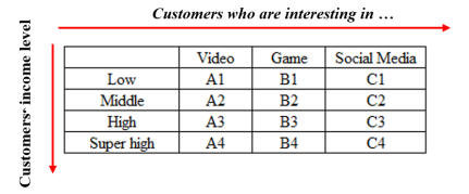 In a word, when making the digital marketing plan, it should focus to communicate with the customers who are interesting in watching video and playing games; meanwhile they are on the low and middle-income level.