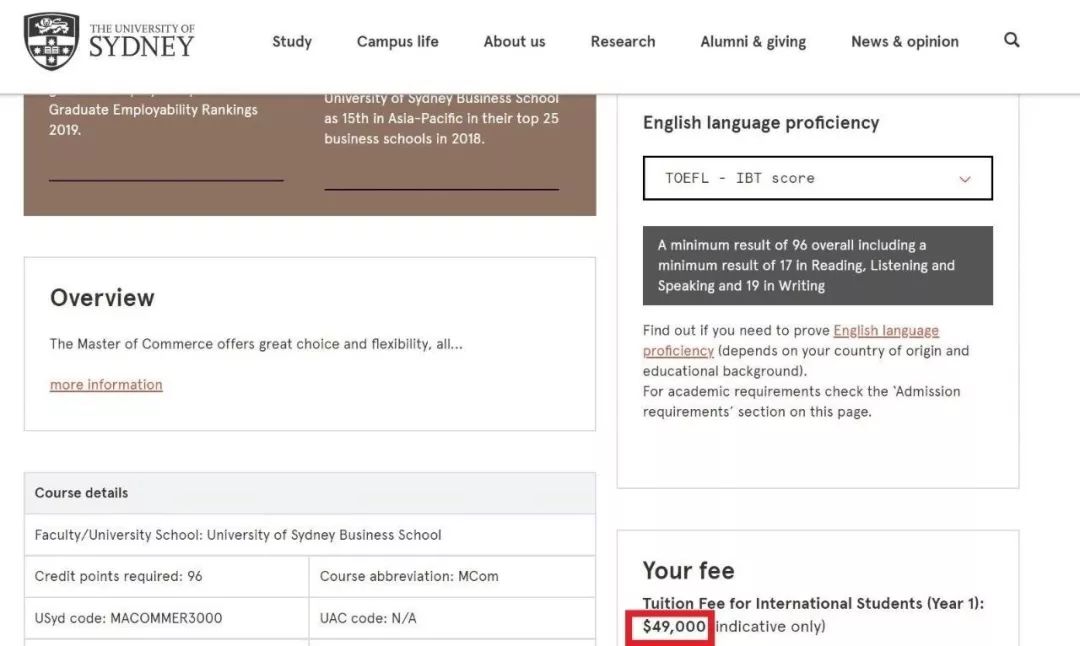 2020年悉大商科碩士的學(xué)費(fèi)暴漲至$49,000澳幣!比起去年的$46,500澳幣,漲了整整2,500澳幣,離5萬也不遠(yuǎn)了啊同學(xué)們!