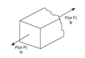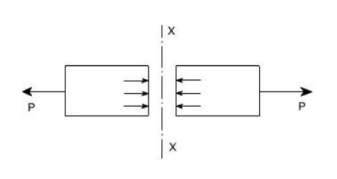 在這種情況下,材料樣品受到的載荷 p 為拉力。考慮一根橫截面為 "A "的矩形棒,在拉力 P 的作用下,棒體在兩處斷裂。如下圖所示,橫截面斷裂成橫截面 XX 的兩部分。