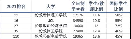圖為英國(guó)TOP30中倫敦地區(qū)大學(xué)的學(xué)生指標(biāo)