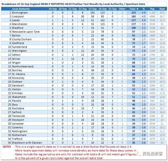 下圖是英國今日新增確診的具體分布,主要列出排名前35的城市。