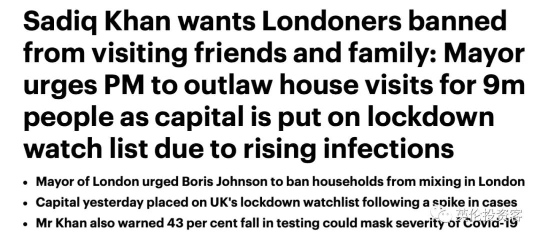 周六(9月26日),他再次敦促首相鮑里斯加強對倫敦的封鎖,趕快推出禁止民眾與其他家庭會面的新政策。