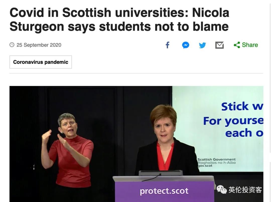 蘇格蘭首席部長強調(diào),學生不應為疫情爆發(fā)負責