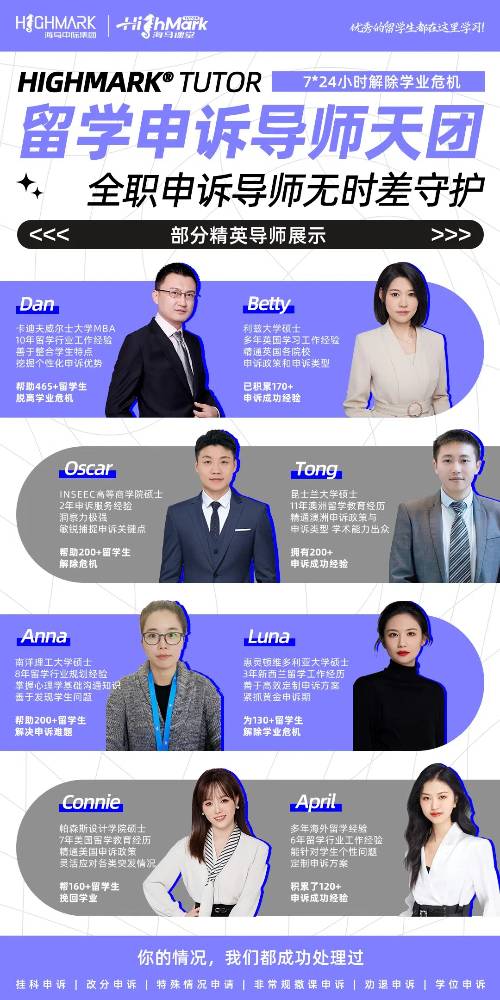 海外留學(xué)遭遇掛科不可怕,可怕的是坐以待斃。海馬課堂擁有 600 + 申訴導(dǎo)師團(tuán)隊(duì),9200 + 申訴成功案例,以專業(yè)和實(shí)力說(shuō)話。無(wú)論是軟硬掛、補(bǔ)考掛還是學(xué)位降級(jí),我們都能為你提供針對(duì)性的解決方案。選擇海馬課堂的申訴服務(wù),讓我們一起為你的學(xué)業(yè)未來(lái)而努力,相信成功就在不遠(yuǎn)處等著你。