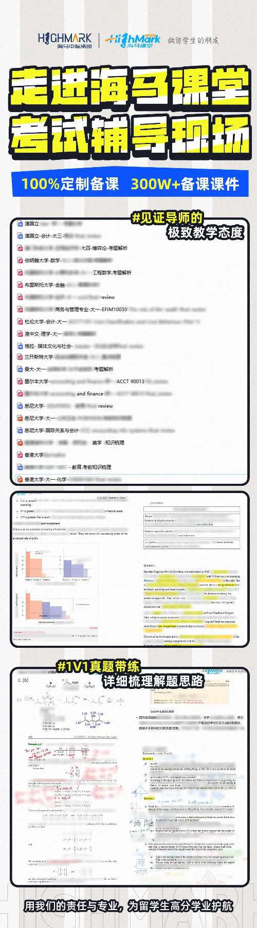 其實(shí),這主要是因?yàn)榱魧W(xué)生們既要適應(yīng)全新的語言環(huán)境,又得同步進(jìn)行專業(yè)知識的學(xué)習(xí)與考試,其難度相較于本土學(xué)生著實(shí)大了許多。不過別擔(dān)心,海馬課堂推出的1v1 考前突擊輔導(dǎo),就像是給你的成績上了一道堅(jiān)固的保險(xiǎn)鎖,讓同學(xué)們和家長們都能安心。點(diǎn)擊藍(lán)字可以咨詢哦!
