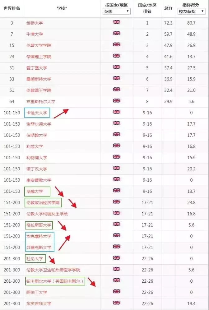 再來(lái)看看英國(guó)世界三百?gòu)?qiáng)的大學(xué)。
