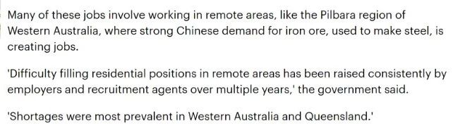 其中不少工作機(jī)會(huì)要到偏遠(yuǎn)地區(qū),比如西澳的Pilbara等等一些不少與中國(guó)合作的工程項(xiàng)目。