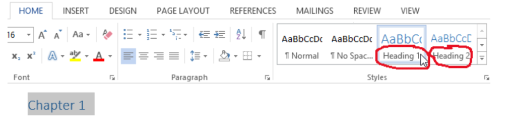 2、頂級標題將是您的章節(jié)標題,因此在選項卡的右側(cè),應(yīng)用標題 1樣式。