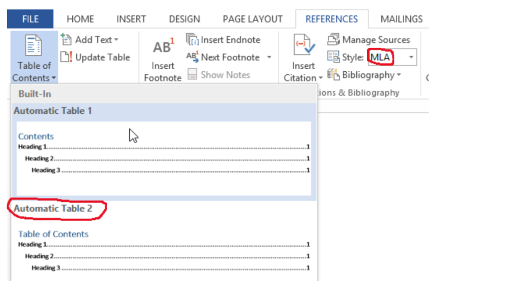 6、接下來,選擇您想要的級別數(shù)。在這種情況下,您希望最多可以有三個級別,因此選擇Automatic Table 2,它具有適合論文的標題。