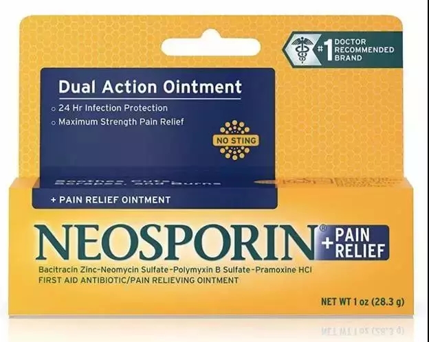 類似于中國(guó)京萬紅軟膏的燙傷產(chǎn)品,在美國(guó)的超市中有Nepsporin抗菌軟膏,它可以殺死皮膚上的細(xì)菌防止感染。