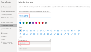 你也可以在訂閱時將考試日歷添加到其他組中,例如“My Calendars”或“UCL”,這在你看到Office 365日歷導(dǎo)入頁面時可以選擇。