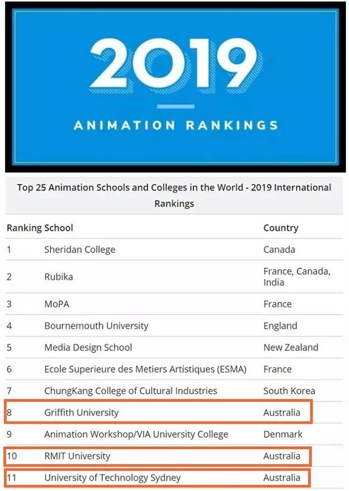在2019年國際動畫學(xué)院排名中,格里菲斯大學(xué)的動畫專業(yè)在澳大利亞排名第一,在全球排名第八。