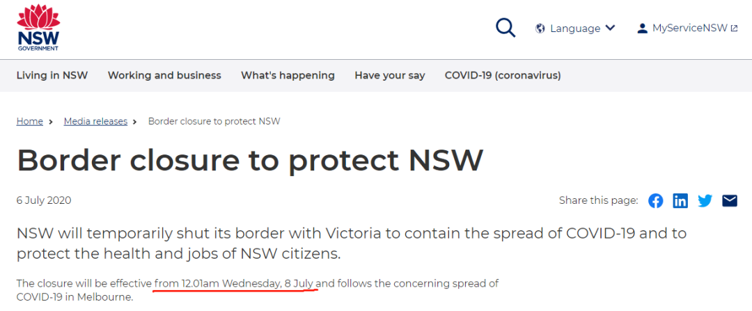 ②根據(jù)新州公共衛(wèi)生法,現(xiàn)將整個(gè)墨爾本視為疫區(qū)。從今天起,所有墨爾本來(lái)新州的旅客將受到限制。