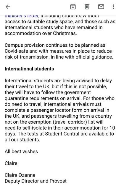 為了保證學(xué)生的安全,UCL讓學(xué)生最早2月中旬才可以返校,甚至有可能推遲至3月底之前返校。
