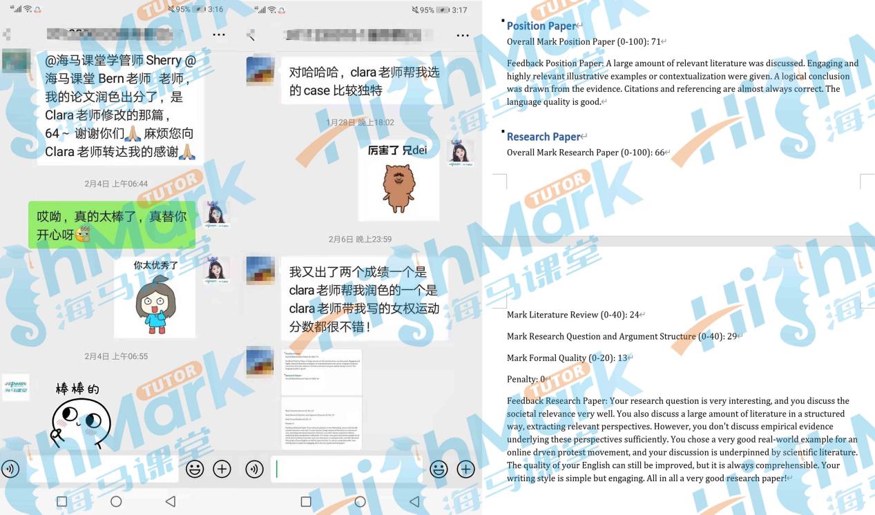 從開始選擇海馬課堂的學術寫作精品班課到學期論文作業(yè),老師一整個學期的全程論文陪同跟蹤輔導,硬是把他從寫作小白變成高分大神!成績斐然。