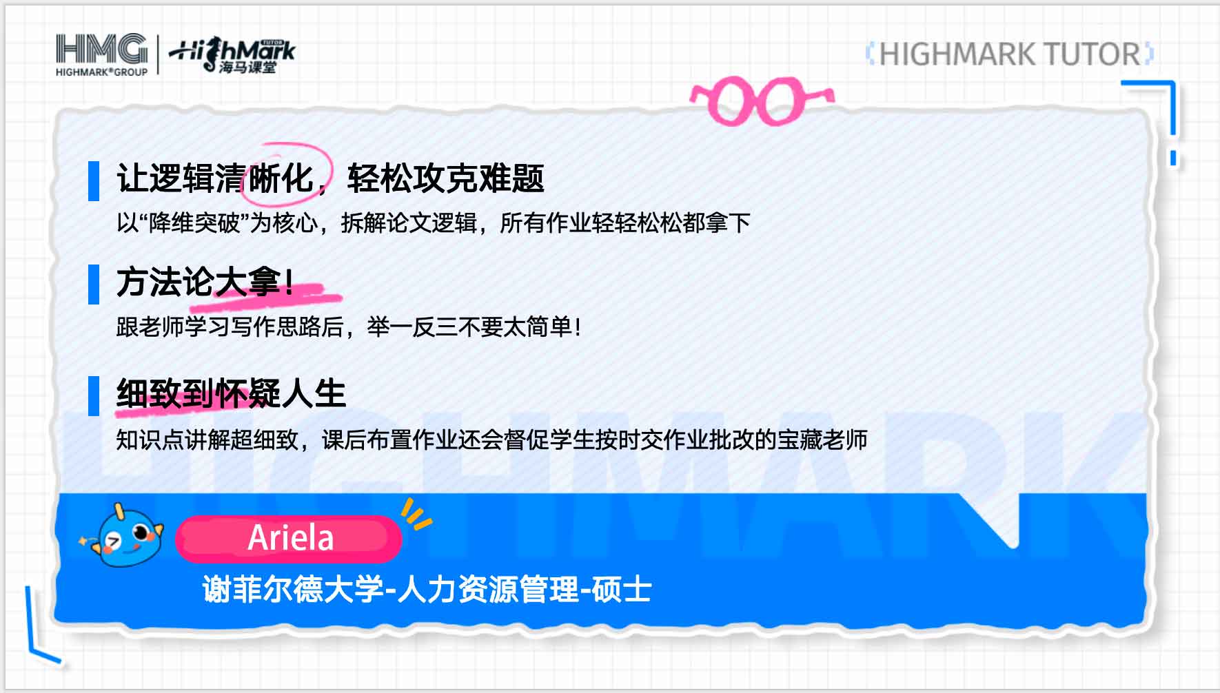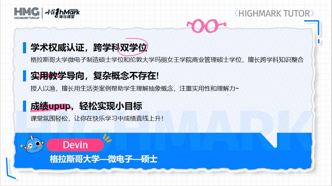 海馬課堂始終堅持嚴(yán)選導(dǎo)師,確保每位導(dǎo)師不僅具備一流的學(xué)術(shù)背景,更擁有切實可行的教學(xué)方法。無論你處在哪個學(xué)科領(lǐng)域,都能在這里找到合適的導(dǎo)師,助你打破學(xué)習(xí)瓶頸、穩(wěn)步提升成績?,F(xiàn)在就咨詢海馬課堂,讓學(xué)習(xí)之路更加高效、順利!