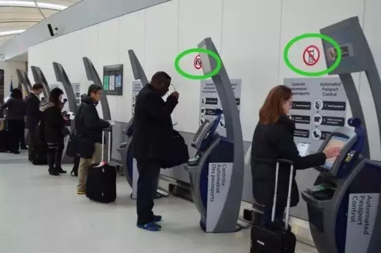 其實(shí),不僅僅是過海關(guān)的時(shí)候,只要墻上貼有這樣的標(biāo)識(shí),在這個(gè)區(qū)域內(nèi),你都不能使用手機(jī)。